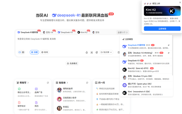 当贝AI聚合了满血版DeepSeek-R1、豆包大模子1.6、通义千问等十余种国内顶尖大模子,支撑医疗征询、金融规划等场景。系统可从动挪用K2生成行程代码、DeepSeek阐发交通数据、豆包撰写攻略案牍,开源24小时内。